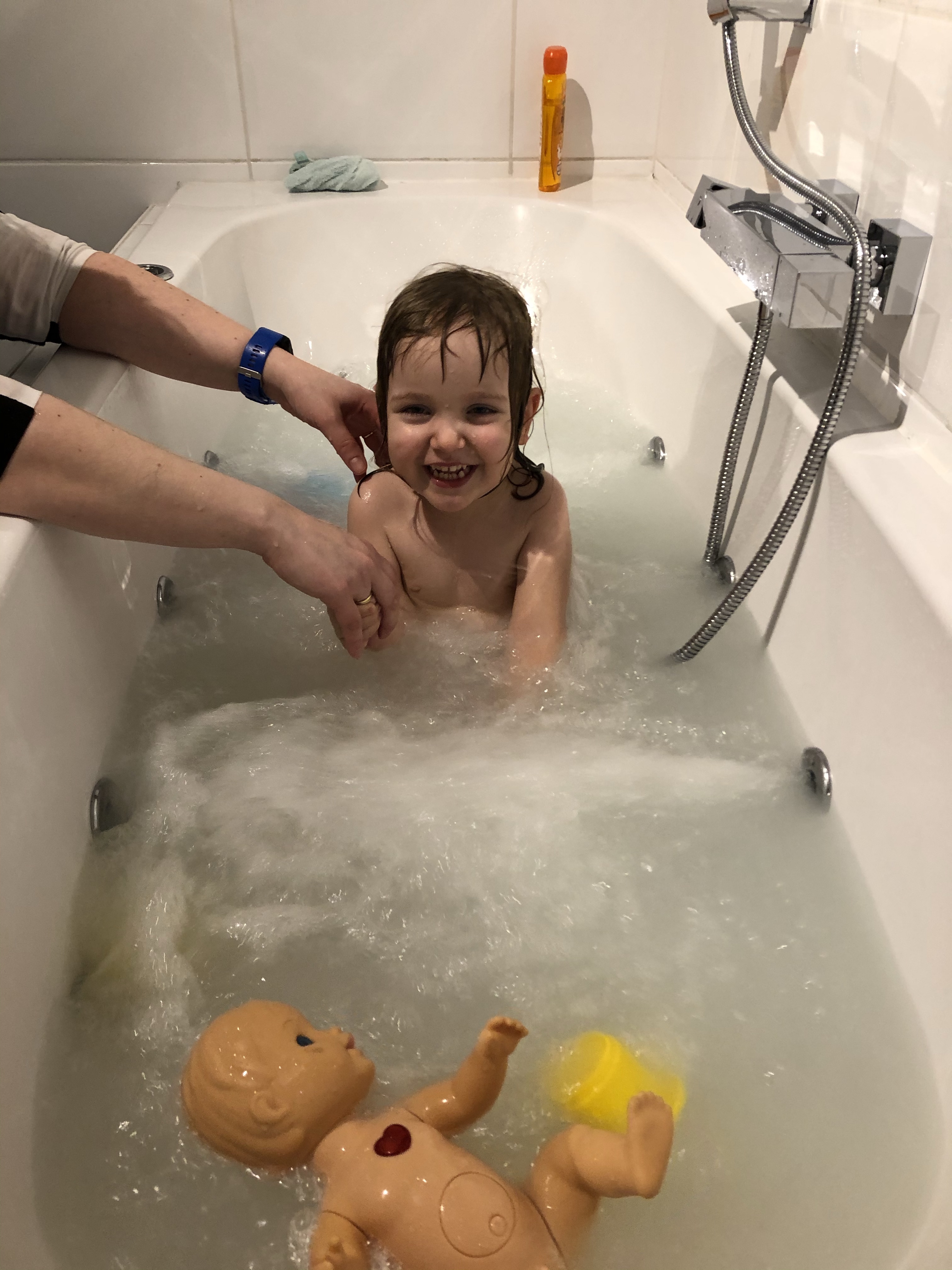 We konden Elise nog even wat paaien met het mixen van deeg en een bubbelbad.