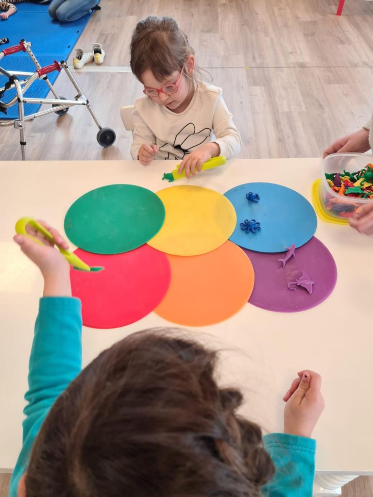 We werkten allen keihard en oefenden zowel grove als fijne motoriek. Er werd gewerkt met 2 therapeuten per kind.